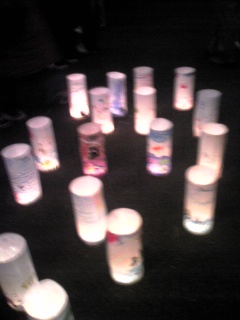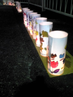 手作りの灯籠に、ひとつづつろうそくが入っている。