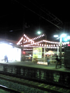 写真②:駅ホームから見えるお祭りっぽい雰囲気