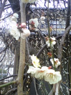 なので、寒いし天気もいまいちだったけど、ちょこっと時間があったので邸宅の美しいしだれ梅を激写。