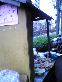 メダカ入り1000円鉢のお店とは反対側の道に、小さな小さな焼鳥屋屋台があるのです。