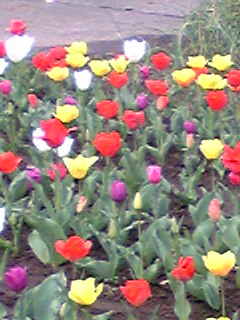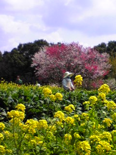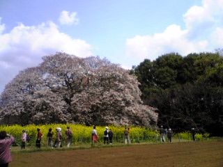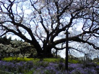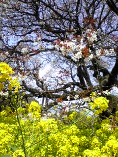 桜の木の下に、紫の花(名前忘れちゃった、あとで書き直します)と菜の花が綺麗な位置で植えられています。