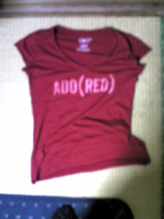 ・帰宅後、「(れっど)」Tシャツを着てみた。