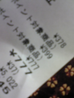 我が家近くの、感じの悪いマ○キヨ(但し他店より安いものは感じがなんであろうと買います)で、いつもと違う組み合わせで品物を選び、レジに行ったら