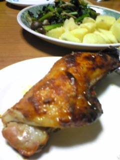 (感じの悪い肉屋で、ひとつだいたい120円くらいで骨付き購入。どこの国の鶏さんかは失念)