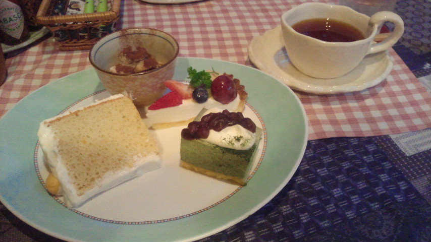(ケーキ3種、アイス、飲みもの…やっぱりたべすぎ)