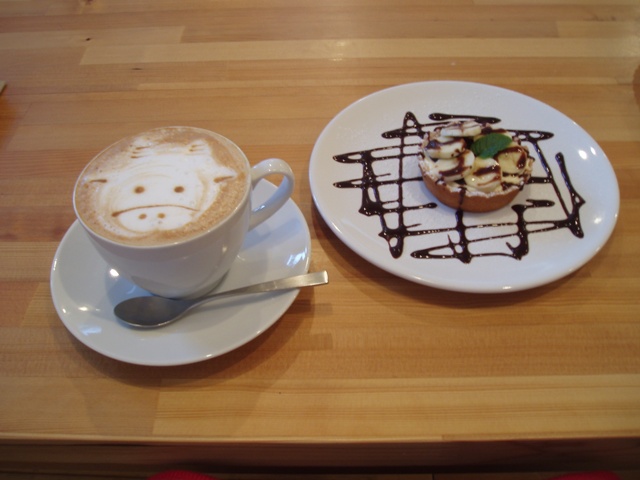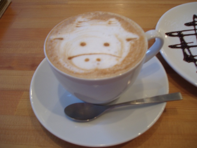 アマレットラテってどんなのですかと店員さんに聞いたら、「アマレットというアーモンドを使った杏仁豆腐のような香りのするものをコーヒーに入れて風味づけしてるんですよ」と教わる。